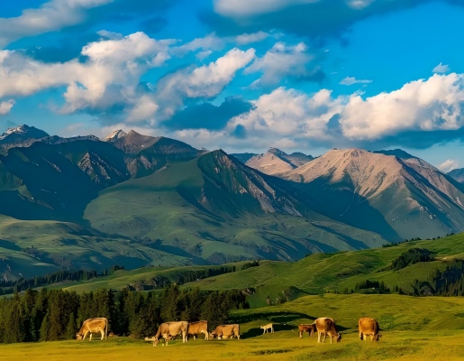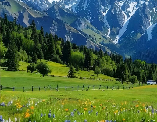 After breakfast, tour the Octagonal City of Tekes. Afterwards, we shall travel by coach to Qiaxi Forest Park, a rare haven for summer retreats, painting, and photography. Its landscapes blend majestic grandeur with exquisite beauty, earning it the epithet ‘Qiaxi's scenery is as beautiful as a painting.’ Countless literati and artists have composed verses and created ink paintings in its honour. Snow-capped peaks against azure skies, verdant mountains reflecting emerald waters, and the sweet fragrance of blossoms create a fairy-tale realm. Local herdsmen call it Awulya, meaning ‘heaven’. After exploring, proceed to the Kuerdning Scenic Area. Surrounded by green hills, winding streams, and emerald mountains, the grass stretches like a vast green carpet. Gaze upon distant snow-capped mountains and immerse yourself in the sea of forests nearby – its beauty defies description.